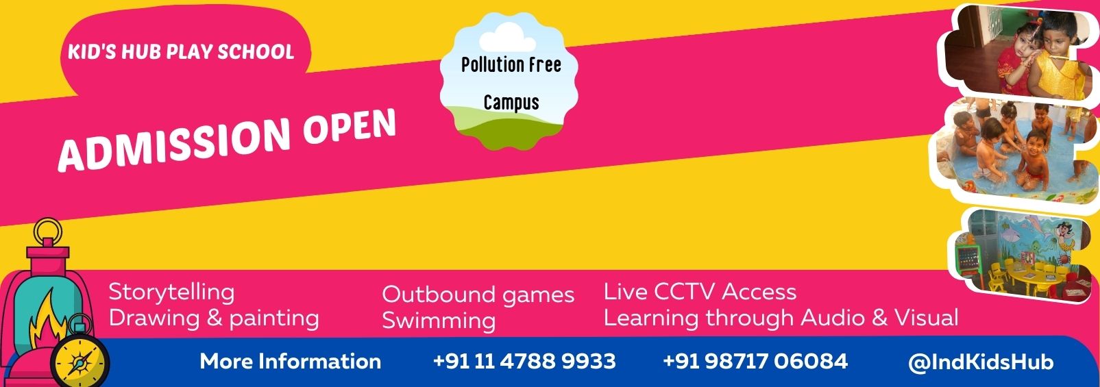 I am very happy with my experience at Kid's Hub Play SCHOOL. Earlier I was quiet hesitated to send my child, thinking whether good care of him will be taken or not. But as the name suggest Kid's Hub Really Made it easy. The summer camp and other activities which are conducted is really great and my son who is very reserved kind of child now has learned to perform on stage. The school offers a great infrastructure and world class amenities.